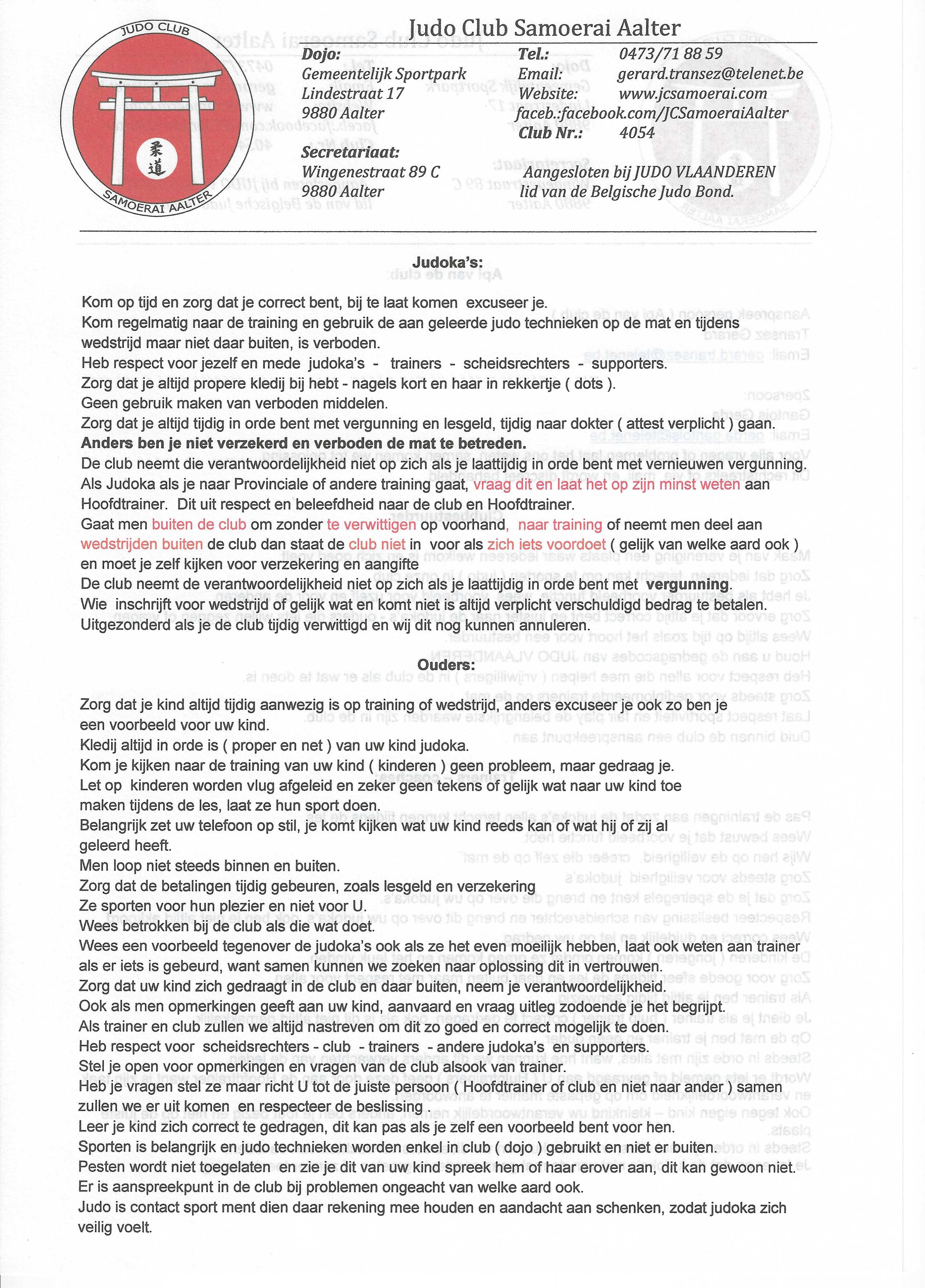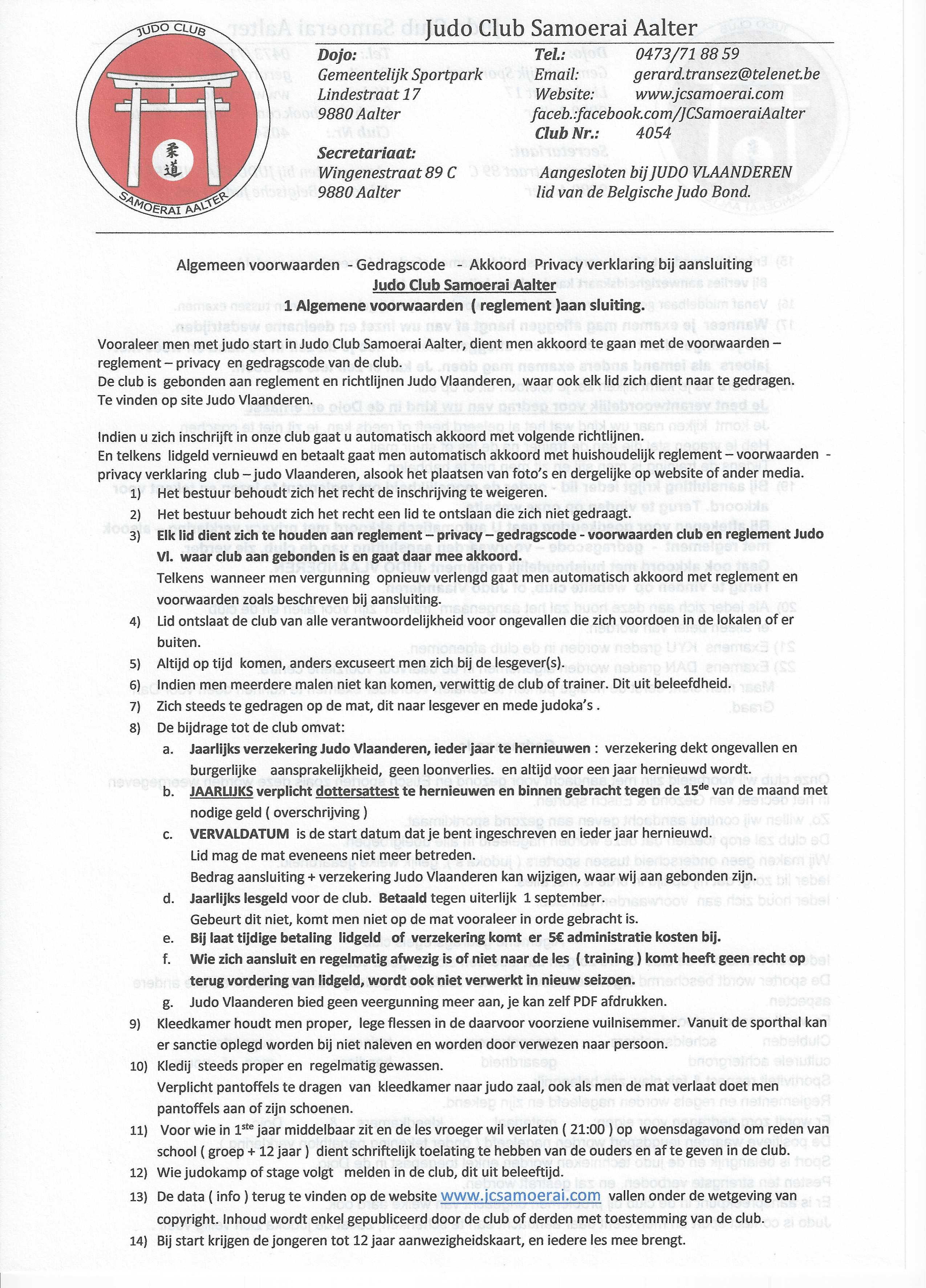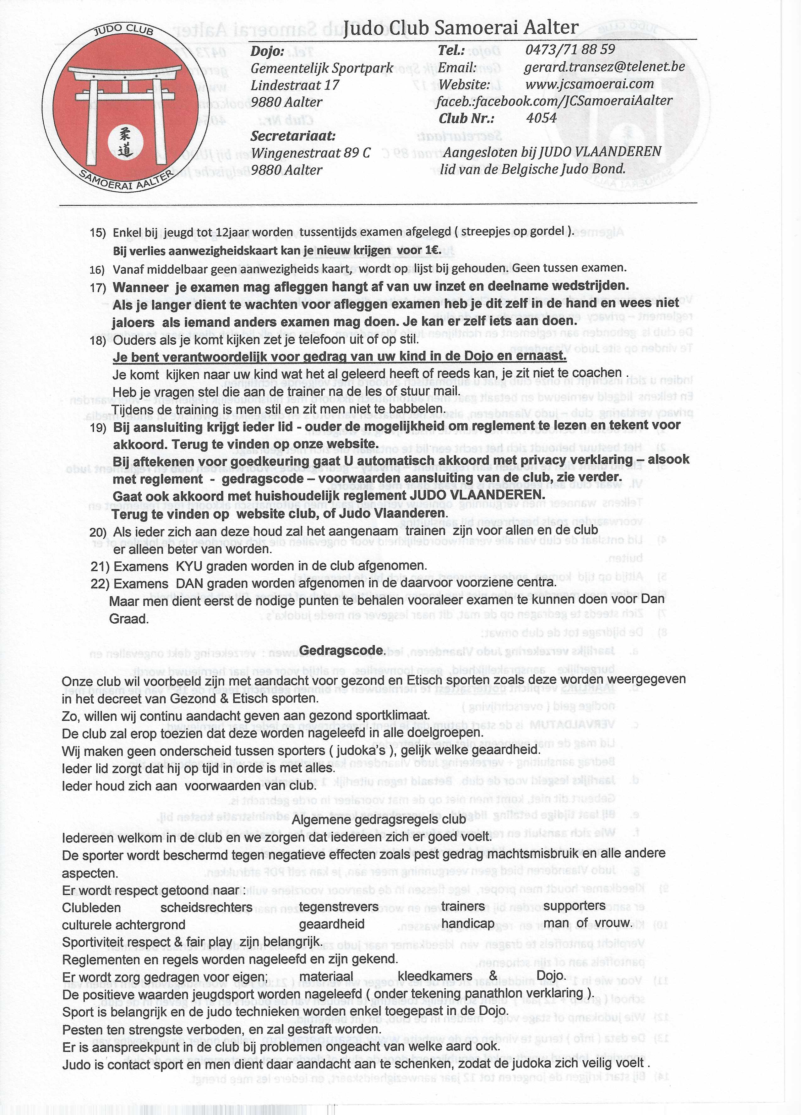 Documenten - reglement - aansluitingsformulieren club + JVL.
