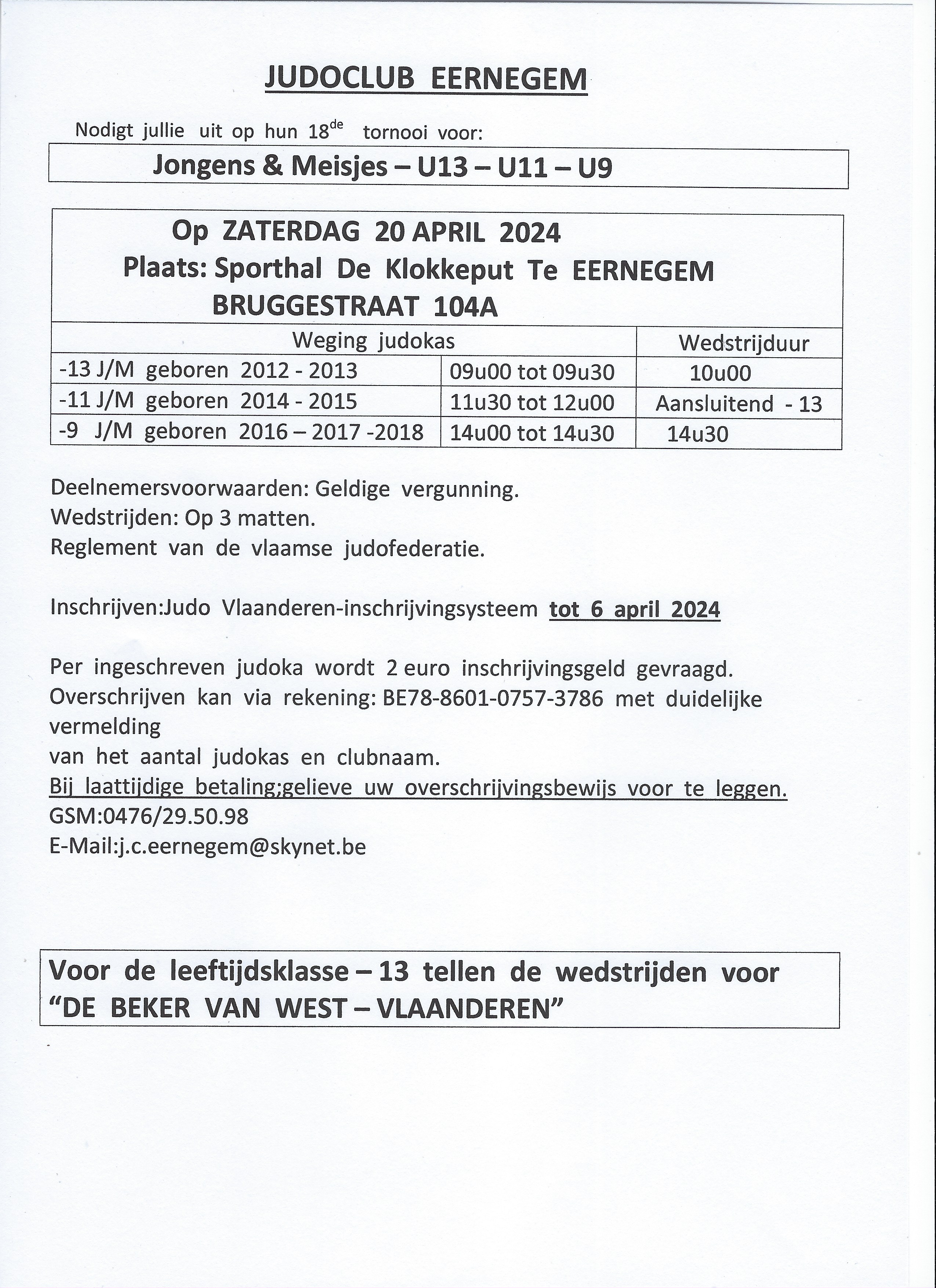 20° Internationaal tornooi U15-18-21+ Ingelmunster