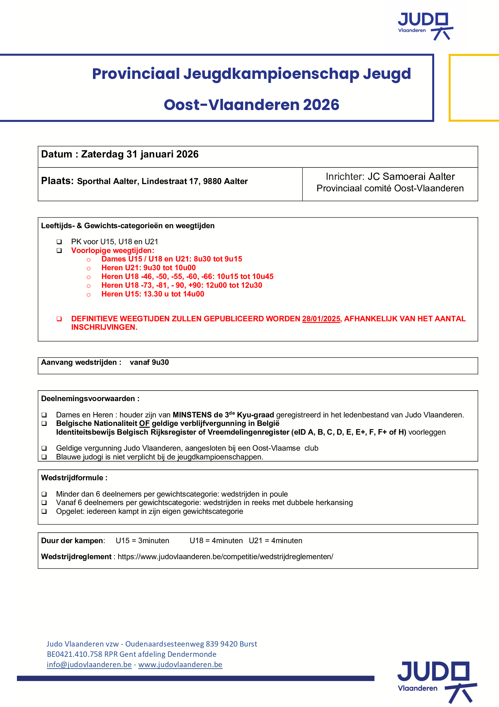 Zat. 08 + zon. 09-02-2025 Vlaams kampioenschap jeugd