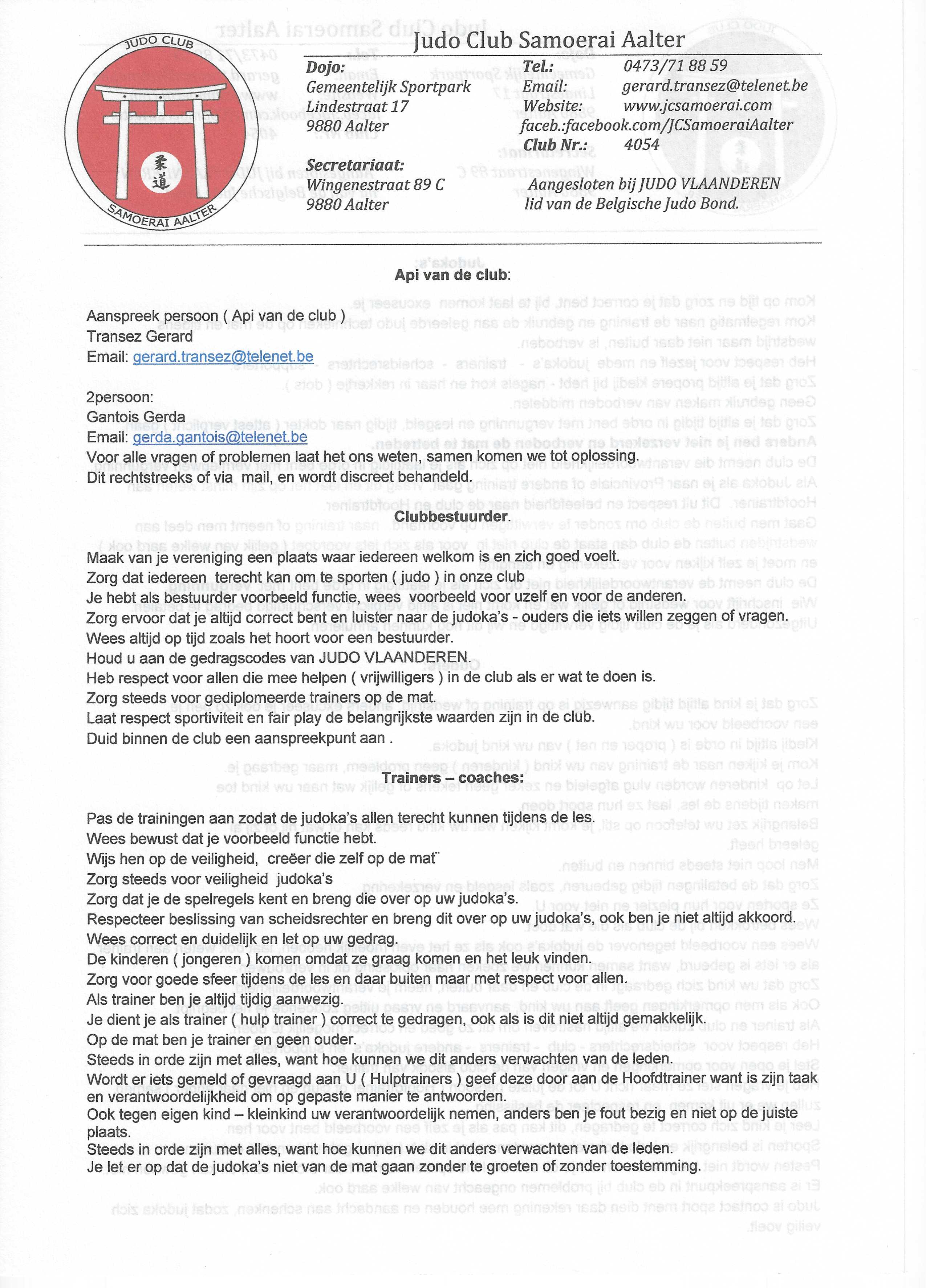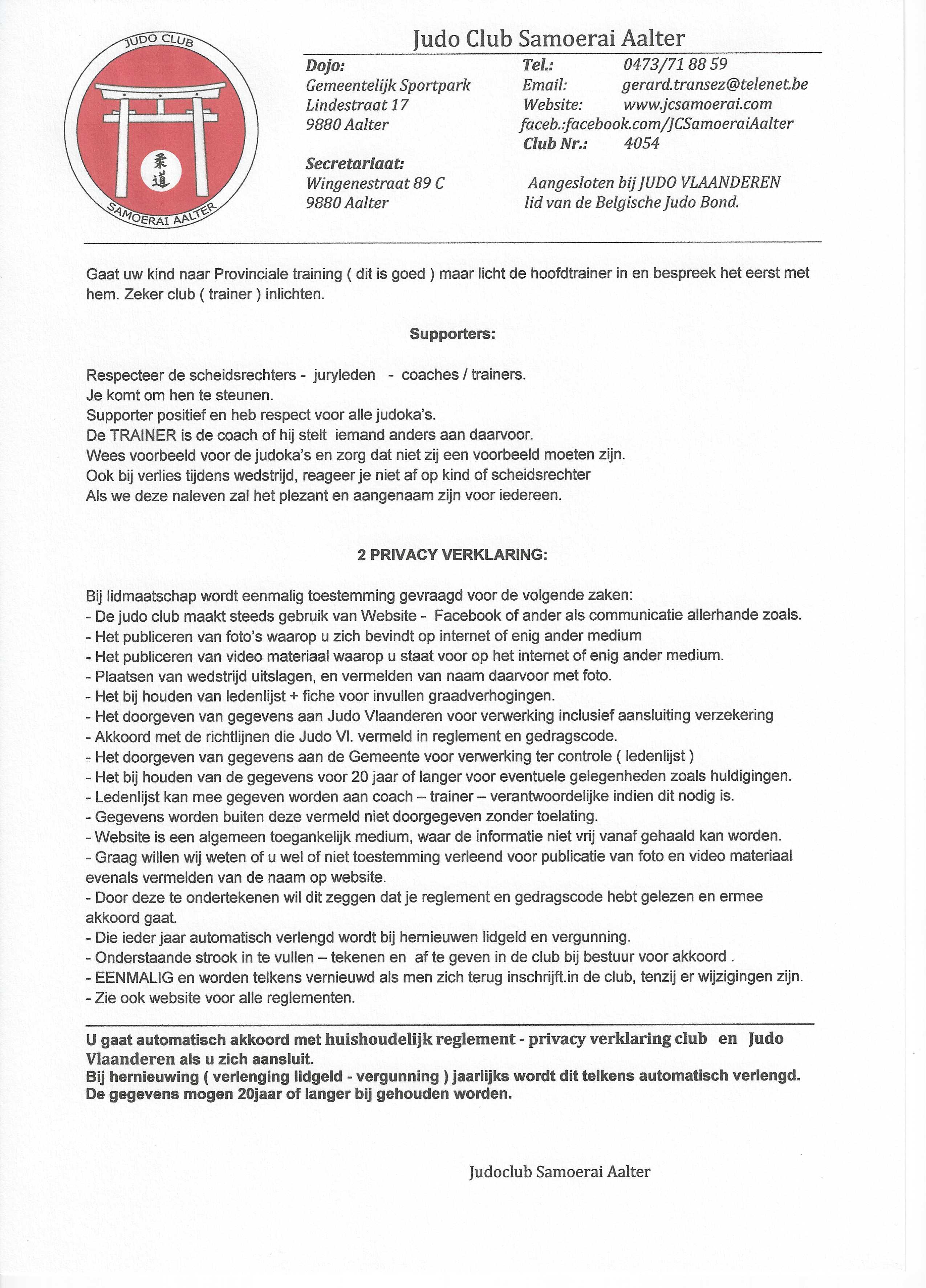 Invulblad aansluiting club + Judo Vlaanderen