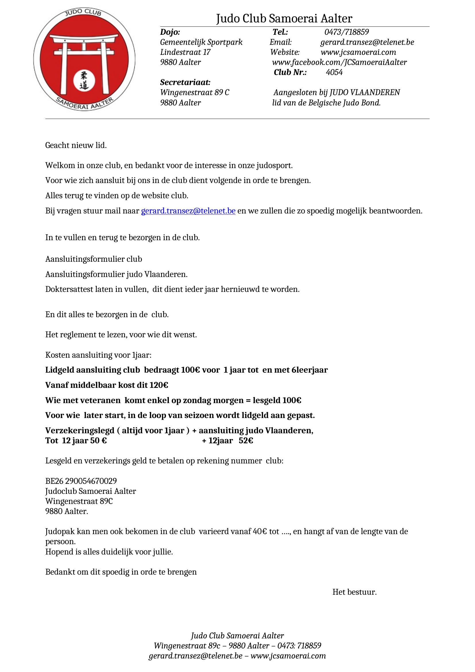Documenten - reglement - aansluitingsformulieren club + JVL.