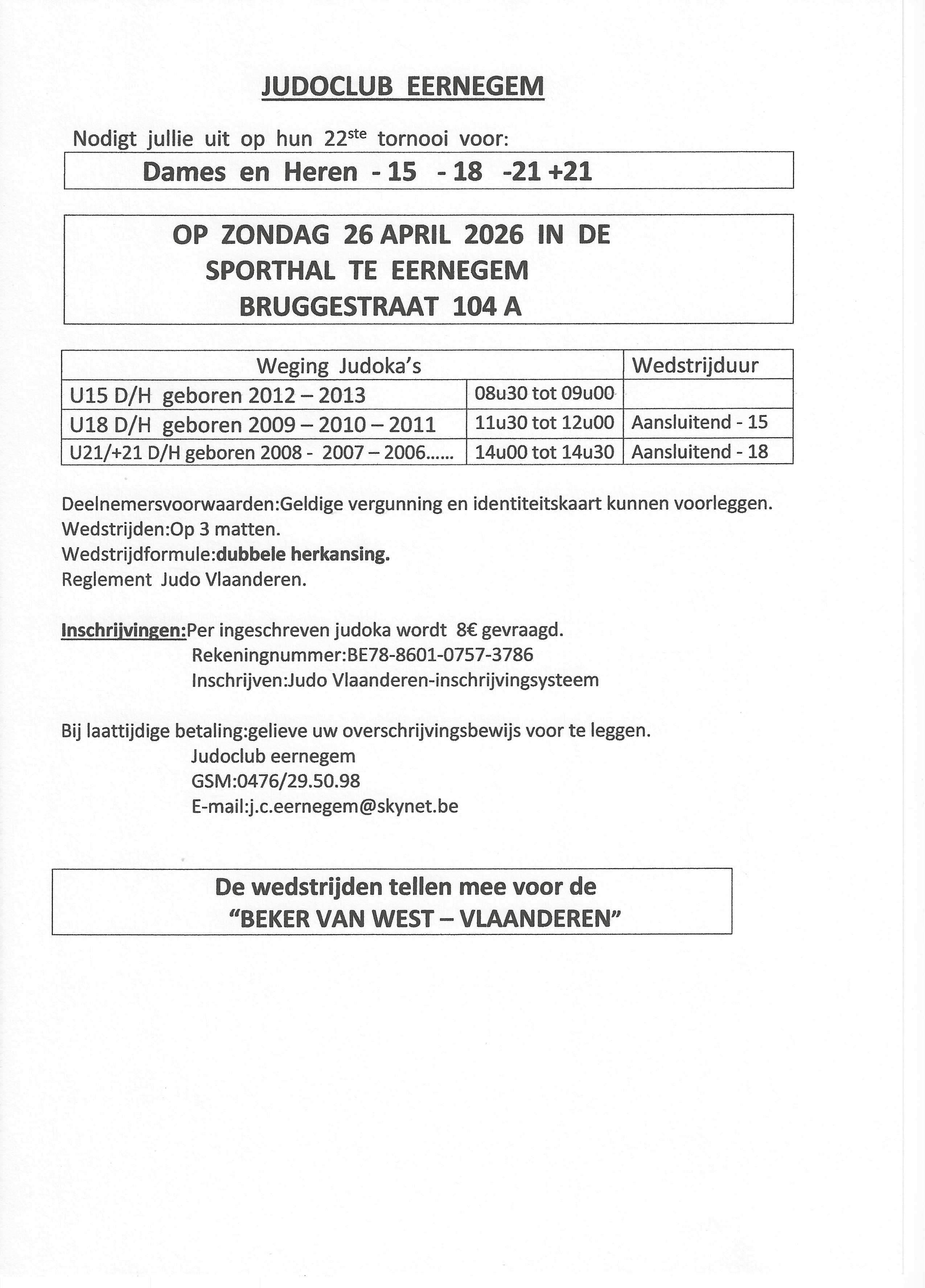20° Internationaal tornooi U15-18-21+ Ingelmunster