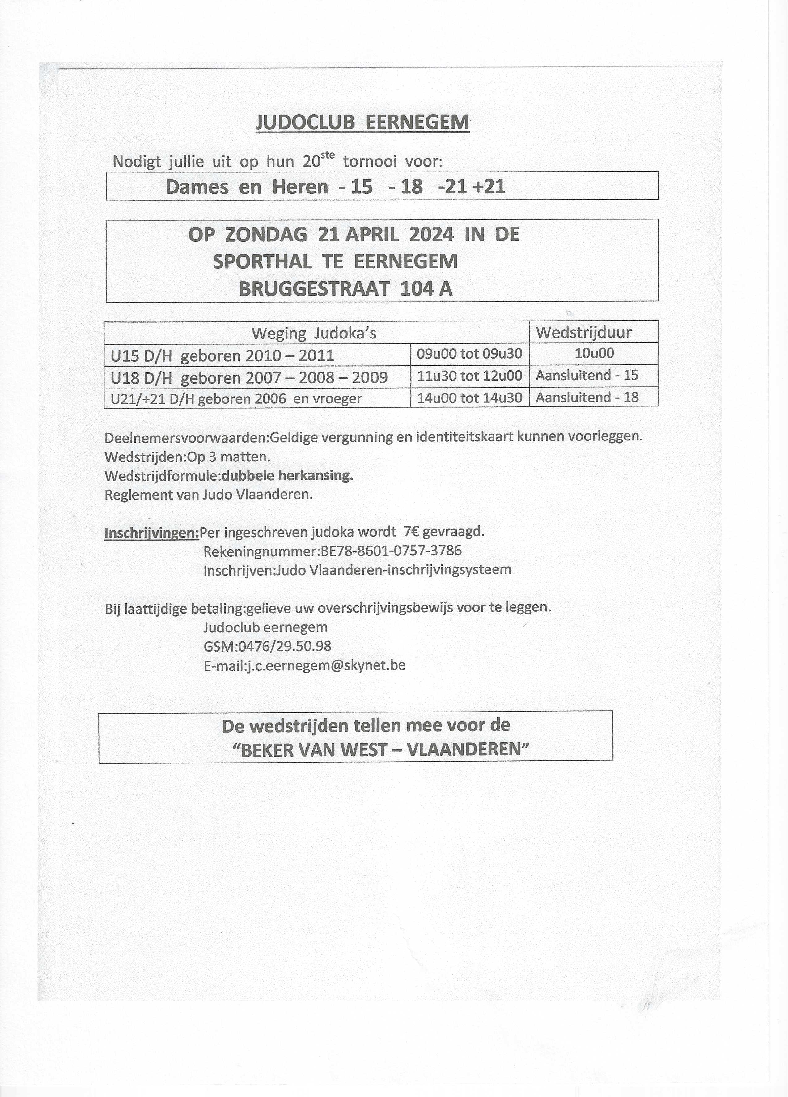 20° Internationaal tornooi U15-18-21+ Ingelmunster
